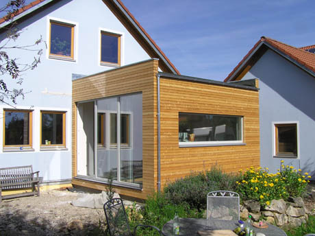 ANBAU IN HOLZRAHMENBAUWEISE MIT DACHBEGRÜNUNG